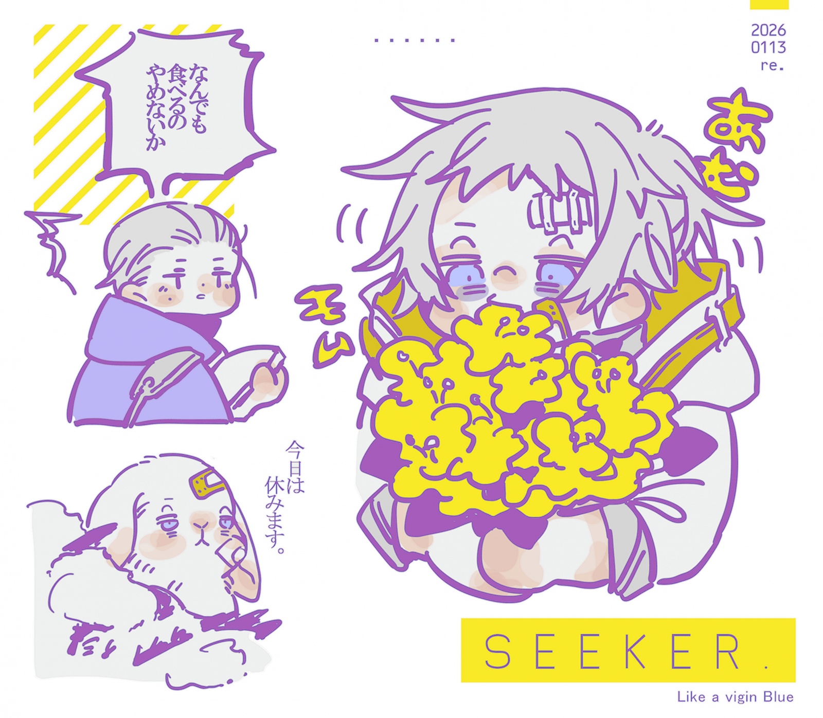 26.01.13今日はらくがき休むか〜と思いながら描いたらくがき。ちょっとお休み。今日の分の仕事も終わったし今日は相撲と海外ドラマ観ながら編み物するぞほんとはミスドに行きたいけどなんか最近炭水化物食べたい期っぽくてお米やパンや麺率高いからミスドは明日にするぞ背筋無さすぎて背筋トレしたらうぐあああ〜!みたいな声出た。背筋の無さやば学生時代陸上部の友人が背筋でびょんびょんバネみたいになってたの思い出した。当時は動きの面白さにお互い爆笑してたけどあの子はすごいマッスルの持ち主やったんや…